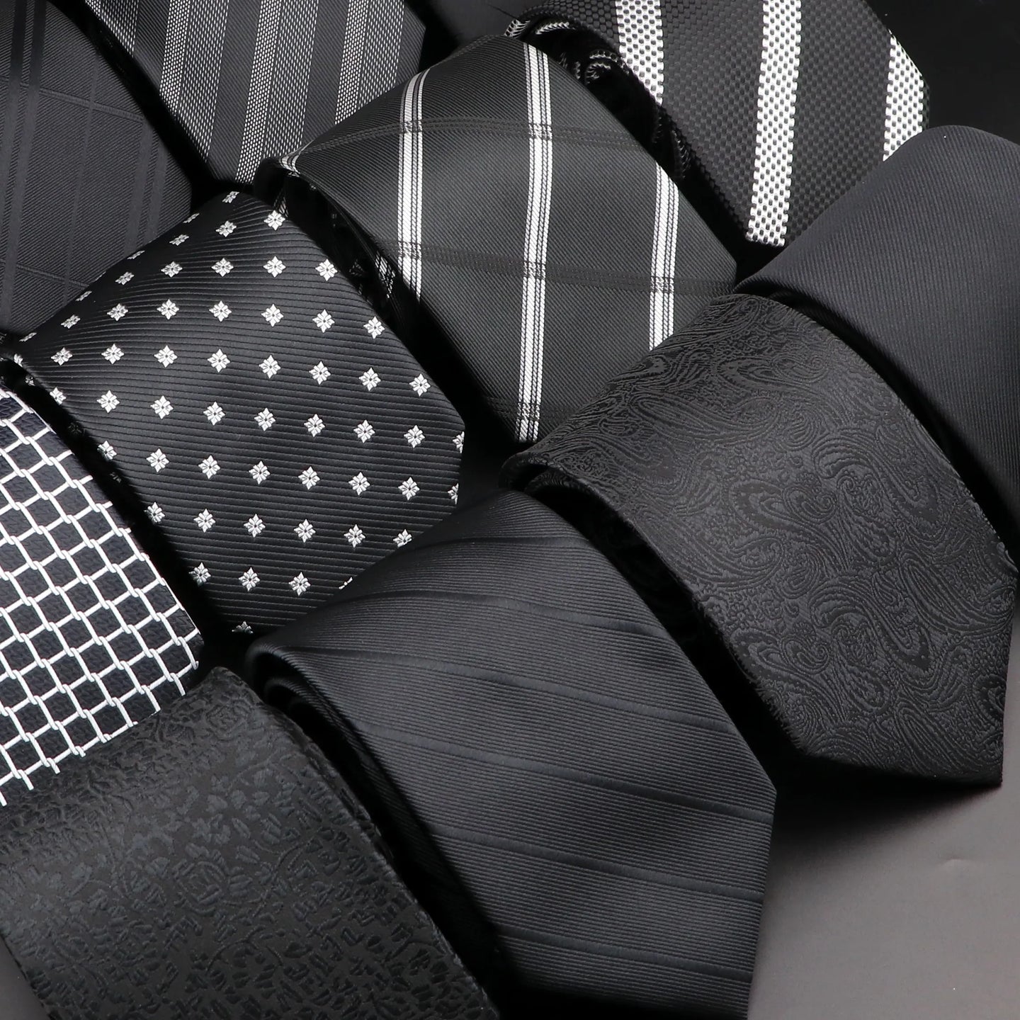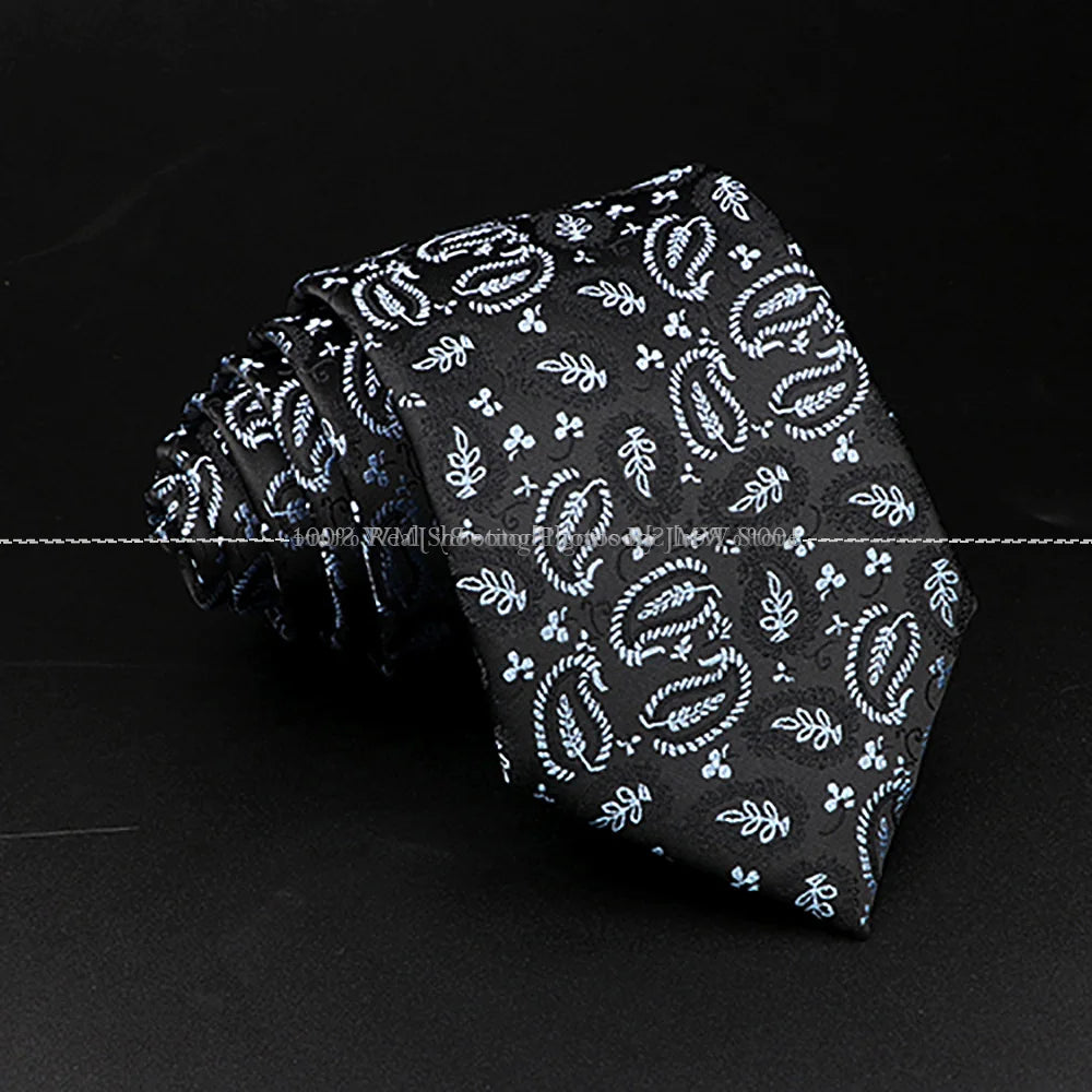 New Design Wedding Men Tie Black Solid Striped Paisley Flower Neckties Men Business Groom Collar Accessories Gift