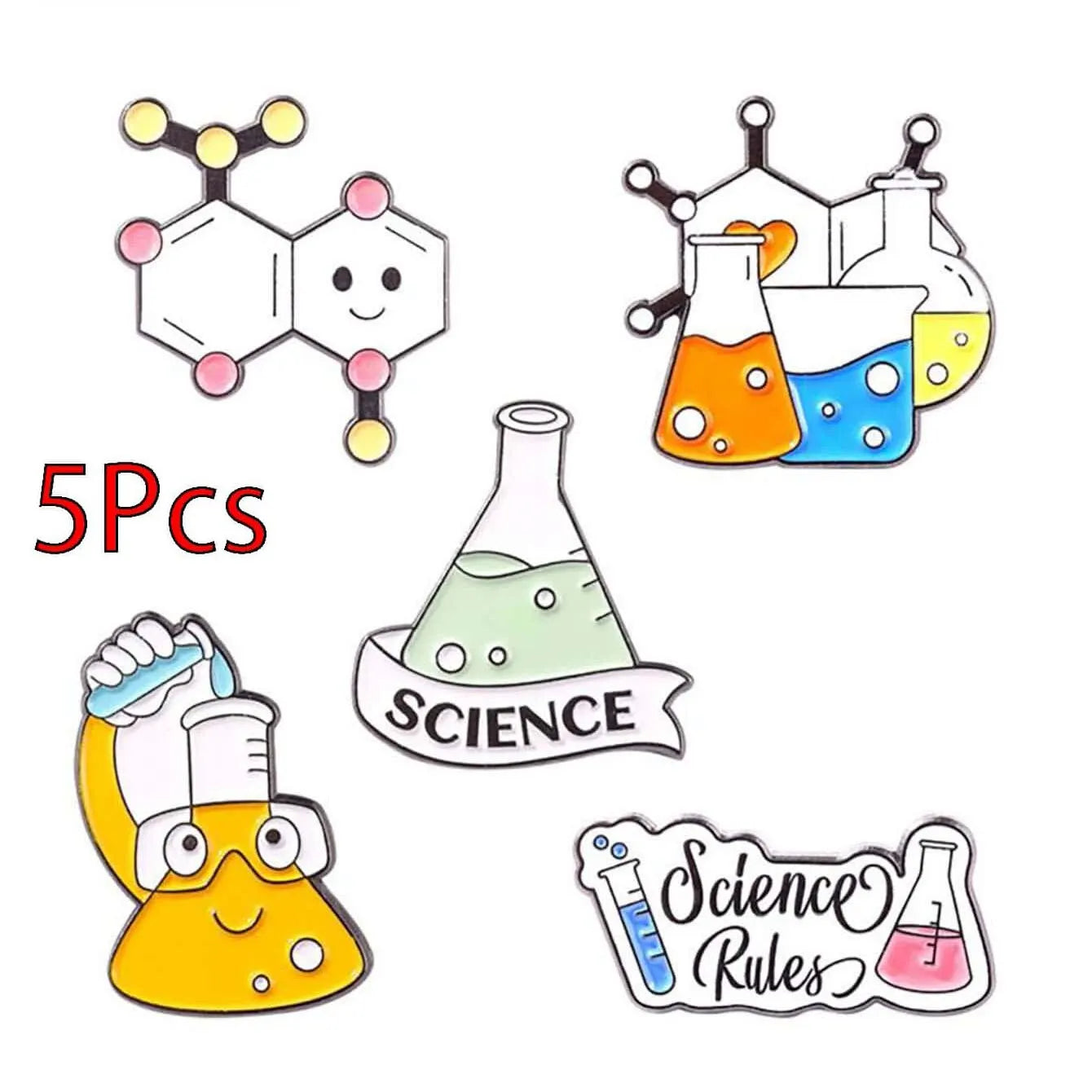 5Pcs Chemistry Molecular Beaker Equation Metal Enamel Brooch Cartoon Microscope Love Test Tube Bottle Badge Pin Jewelry