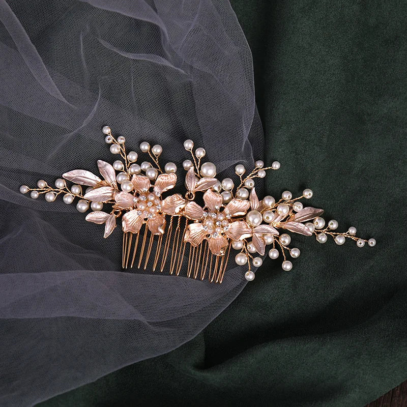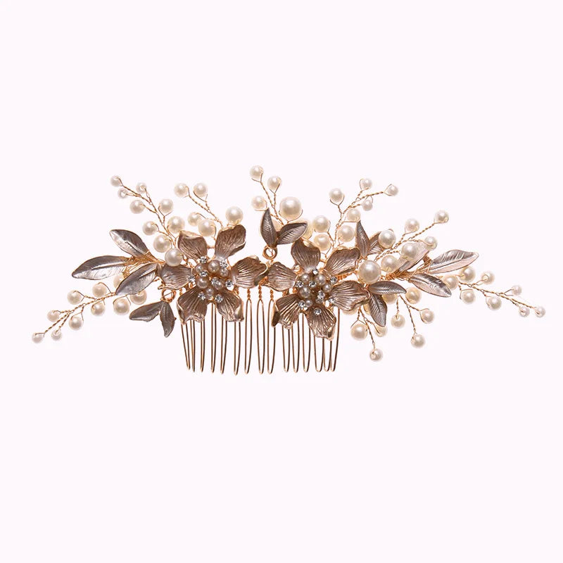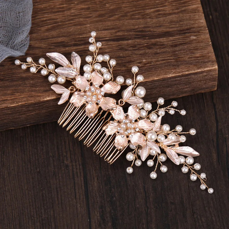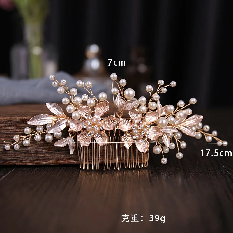 New Trend Hair Comb Wedding Tiaras Floral Pearl Hairpin For Girls Party Headpiece Crystal Shiny Bride Hair Jewelry Fashion Tiara