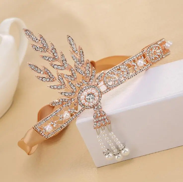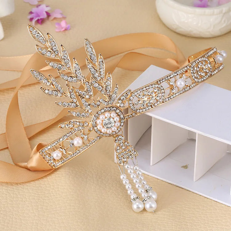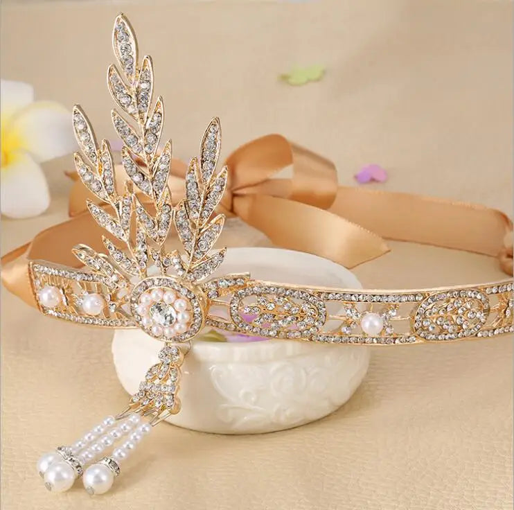 The Great Gatsby Bridal Hair Accessories Crystal Pearl Tassels Hair Headbands Hair Jewelry Wedding Brides Hairband Tiaras Crowns