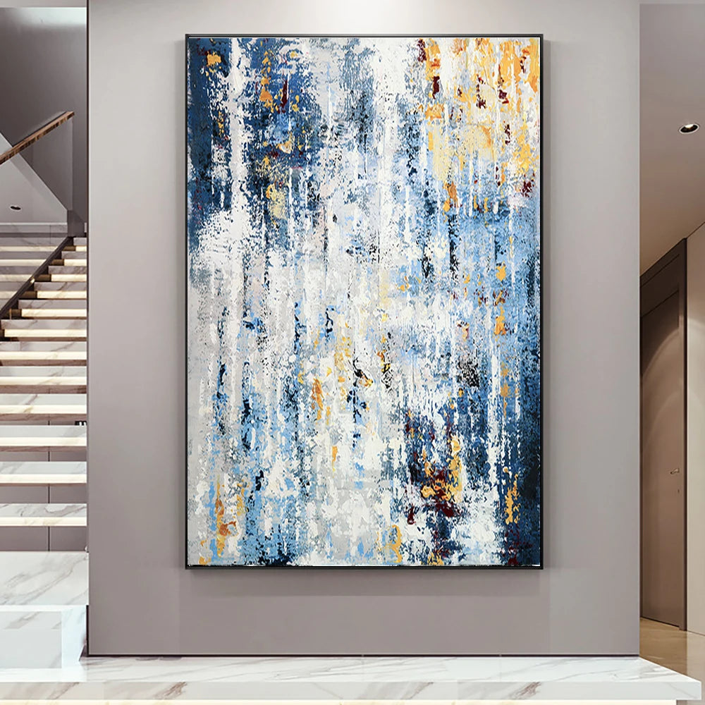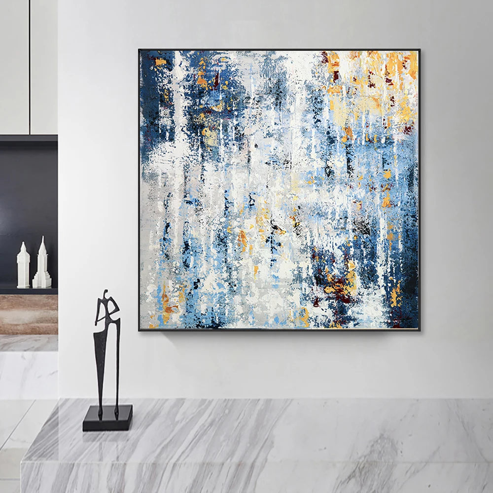 Abstract Art Painting Hand Painted Thick Texture Oil Painting On Canvas Bule White Painting Wall Art For Home Hotel Decoration