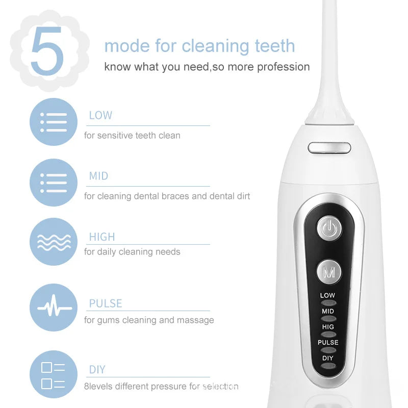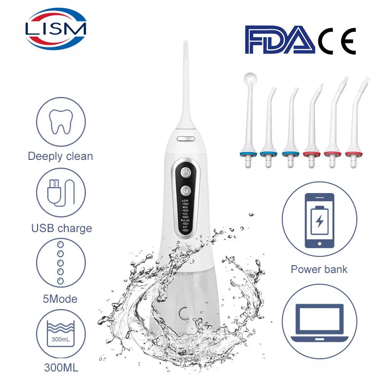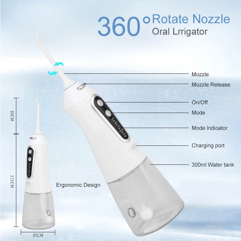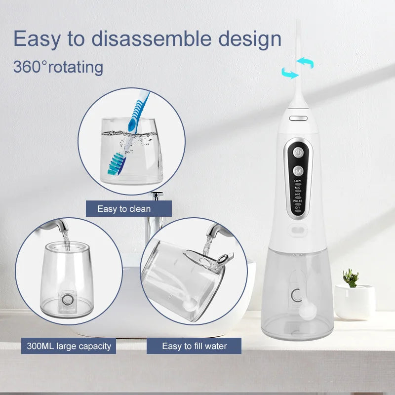 Oral Irrigator USB Rechargeable Water Flosser Portable Dental Water Jet 300ML Water Tank Waterproof Teeth Cleaner For Oral Care