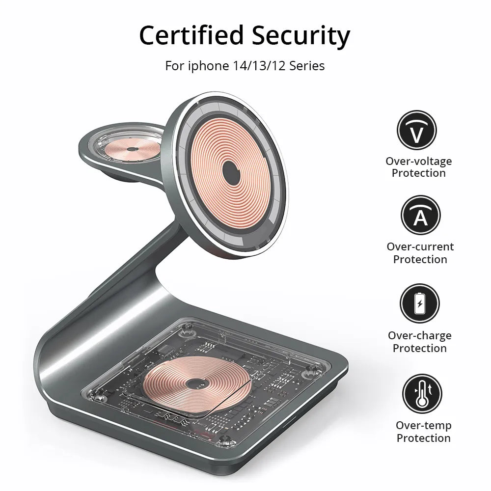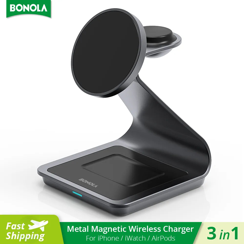 Bonola Metal Magnetic 3 in 1 Wireless Charger for Apple Watch Ultra/AirPods Pro Charger Dock Station for iPhone 15pro 14/13/12