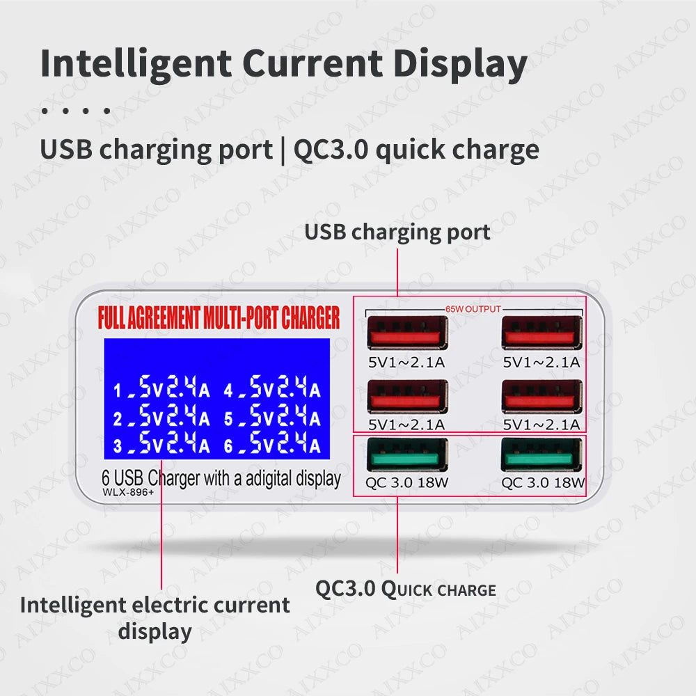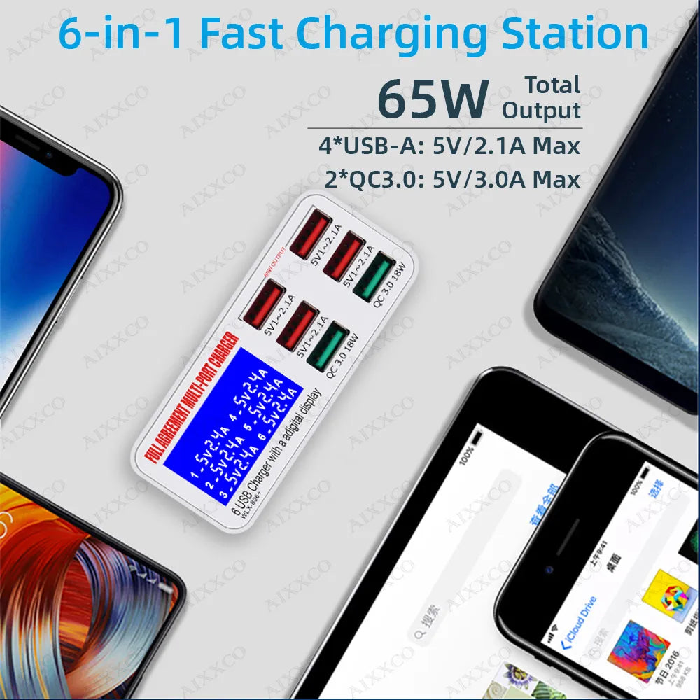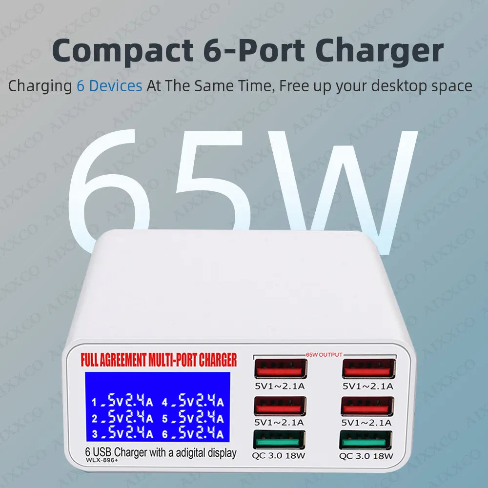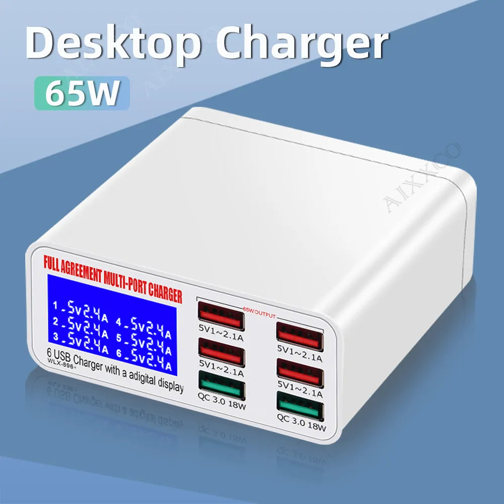 Quick Charge USB Charger 65W LED Display Phone Charger Adapter PD QC3.0 Fast Charger For iPhone Samsung Xiaomi Huawei