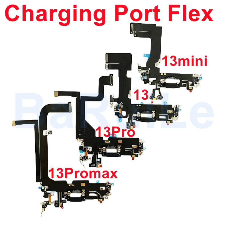 BaRuiLe 1pcs Charging Port Flex Cable For iPhone 11 12 13 Pro Max 14 Plus USB Charger Dock Connector With Microphone Ribbon Part