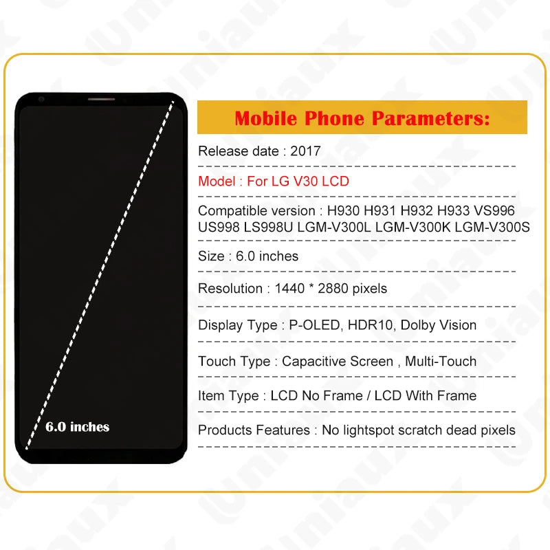 Original LCD Display Touch Screen For LG V30 ThinQ V30 Plus V30+ H930 H930DS H931 H932 H933 VS996 US998 LS998U Digitizer LCD