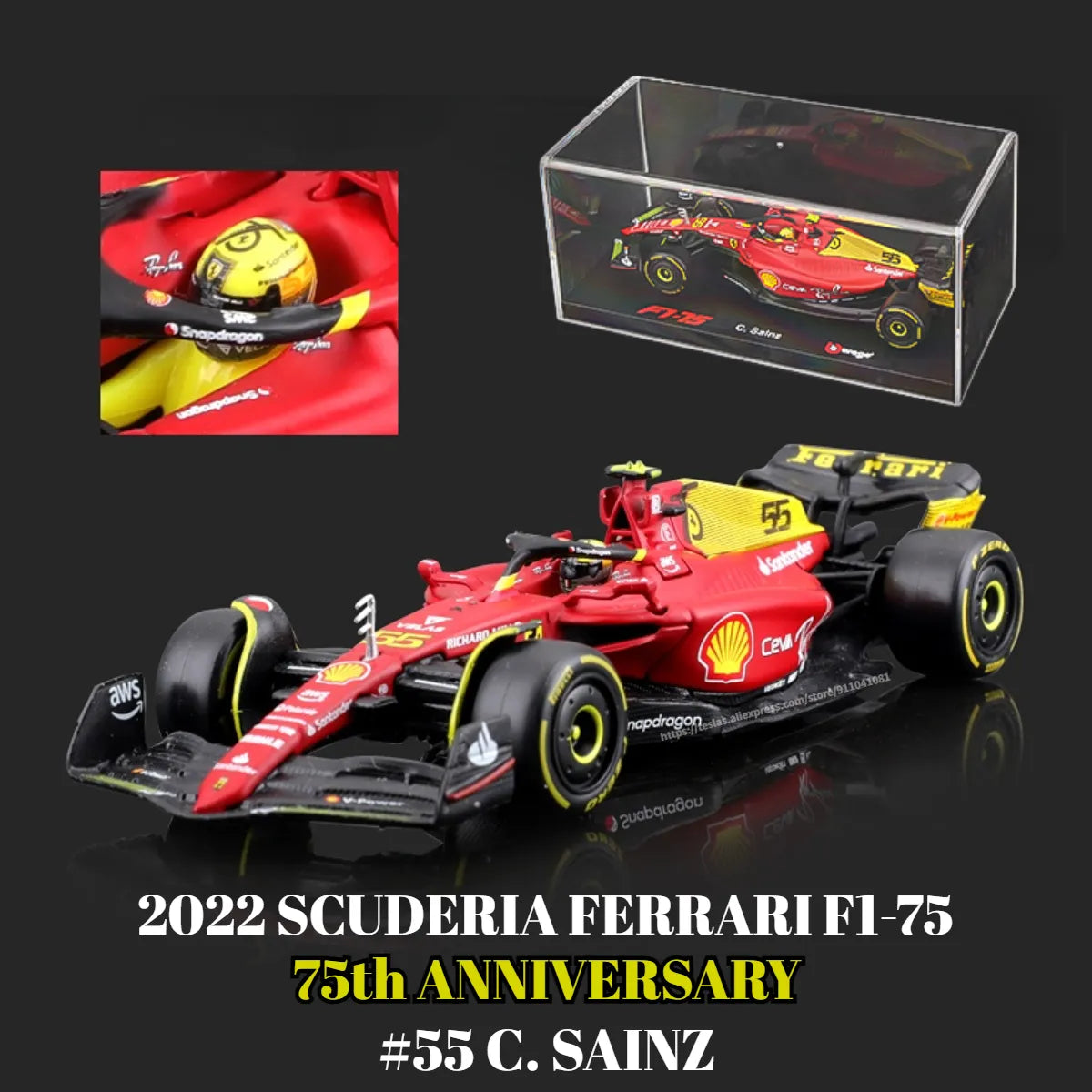 Bburago F1 2022 Car Model with Showcase, 75th Ferrari F175 Scale 1:43 Mercedes Red Bull Racing Replica Formula 1 Toy Miniature