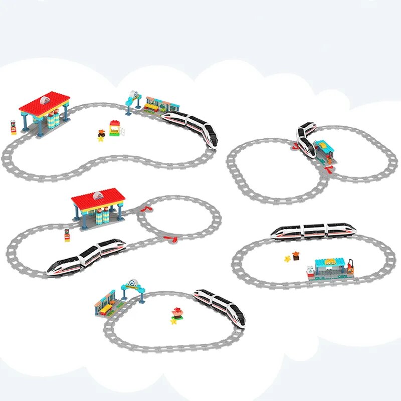 Big Size Building Blocks Train Railway Transport Set Track Parts Electric Locomotive DIY Assemble Interaction Toys For Children
