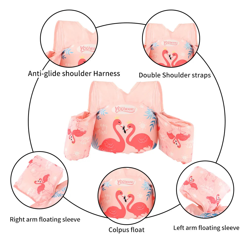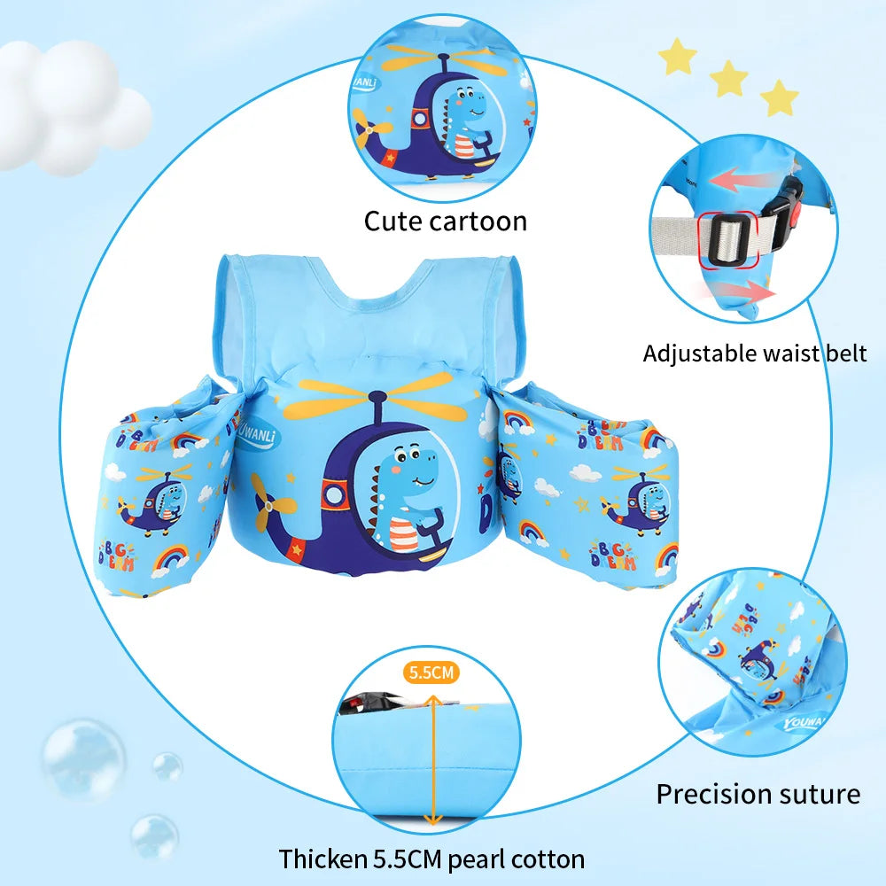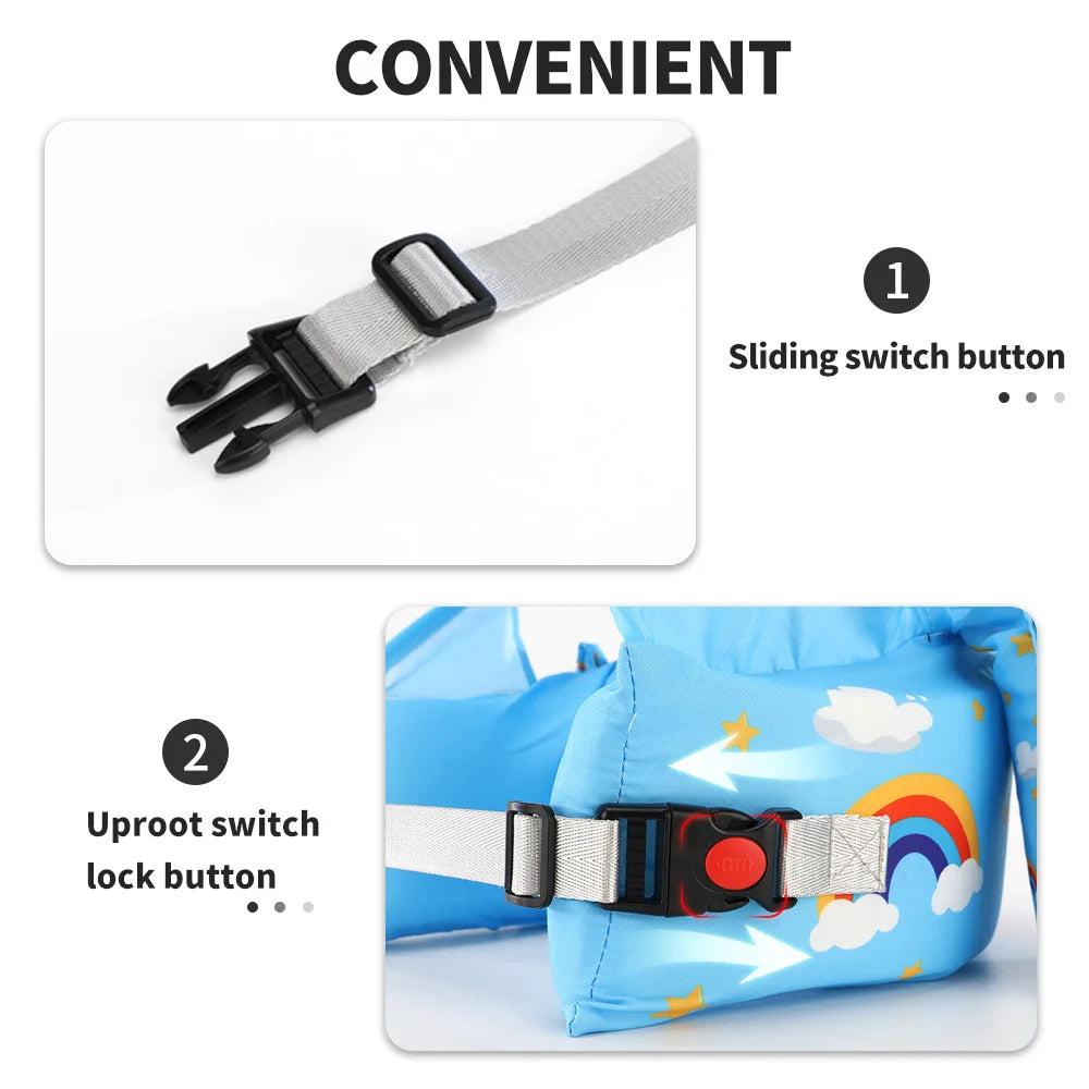 Non-inflatable Double Shoulder Baby Swimming Safely Ployster Sliding Switch Button Swim Equipment Arm Float Kids Life Vest Water