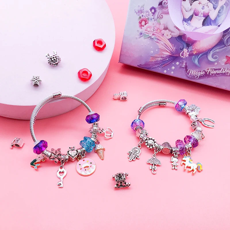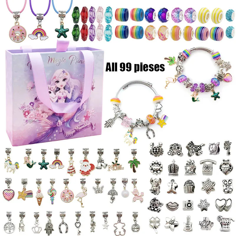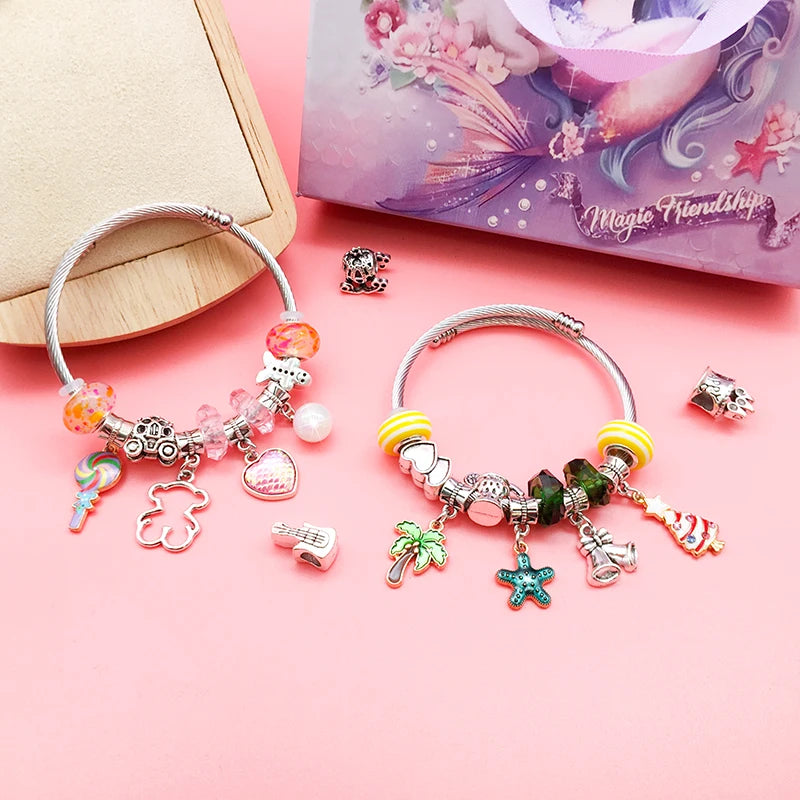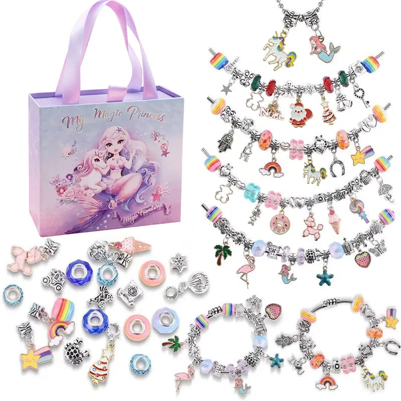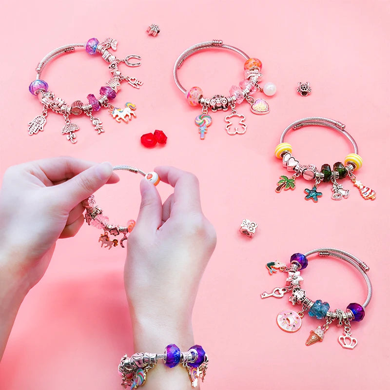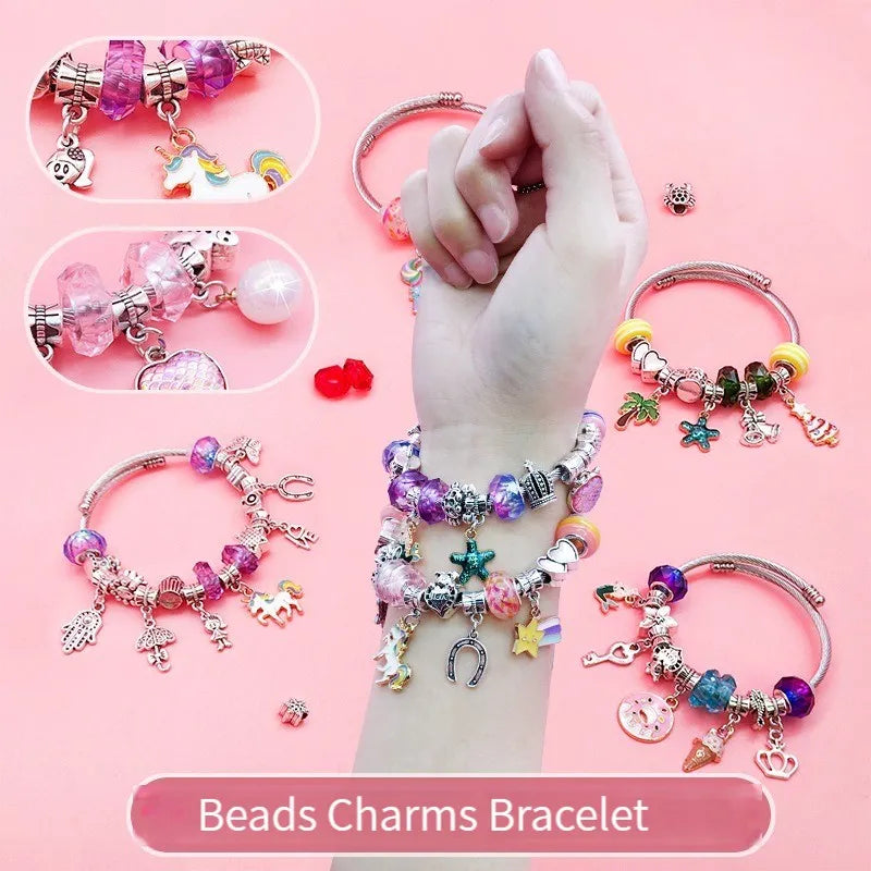 Children's Charms Beads Bracelet Making Kit Jewelry DIY Beads Pendants Set Exquisite Birthday Christmas Gift for Girls