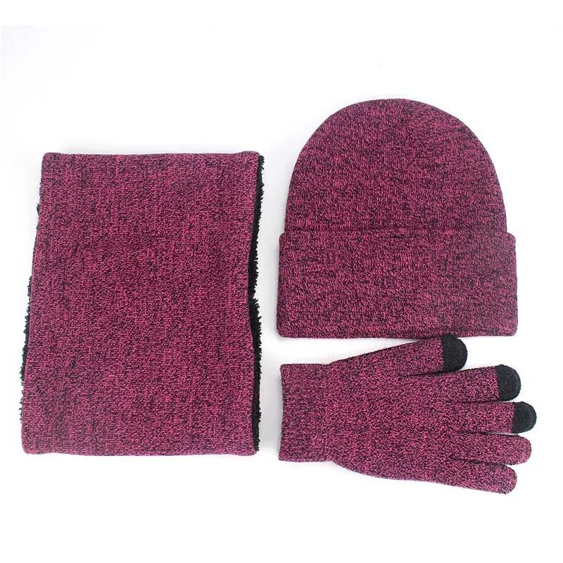 New Knitted Winter Hat Scarf Gloves Set Women Thick Touch Screen Glove Beanies Ring Scarf Female For Girls Gift