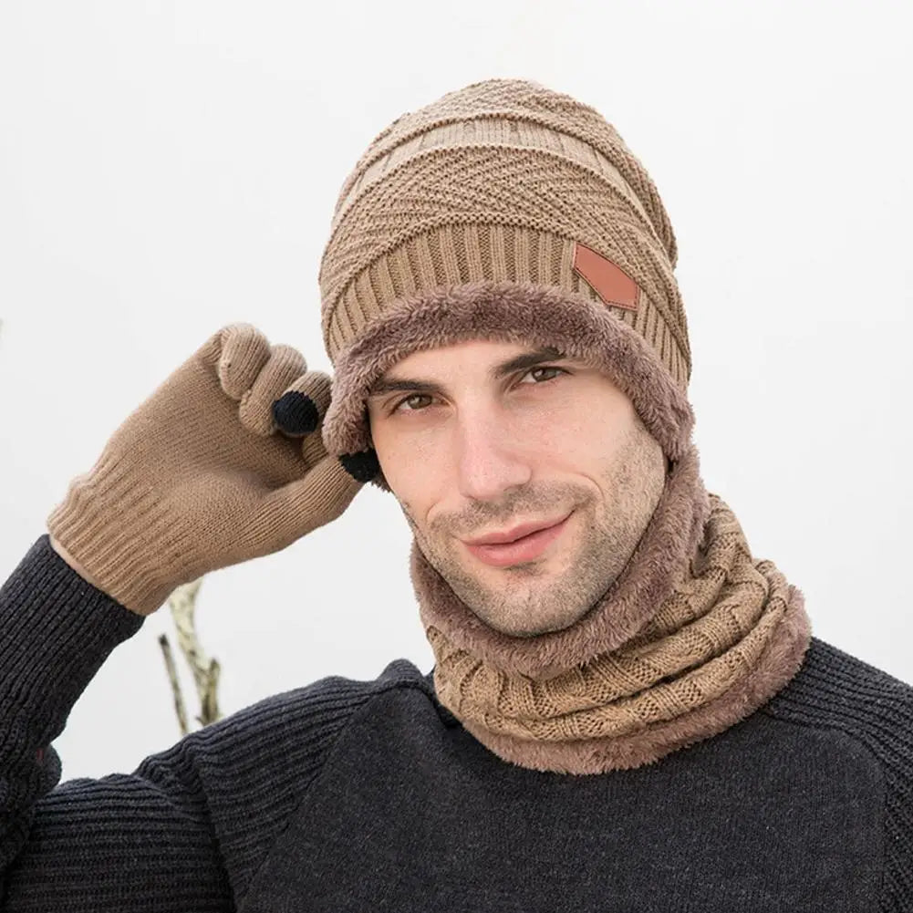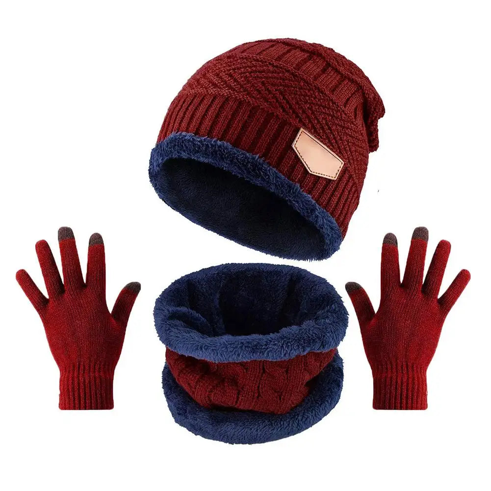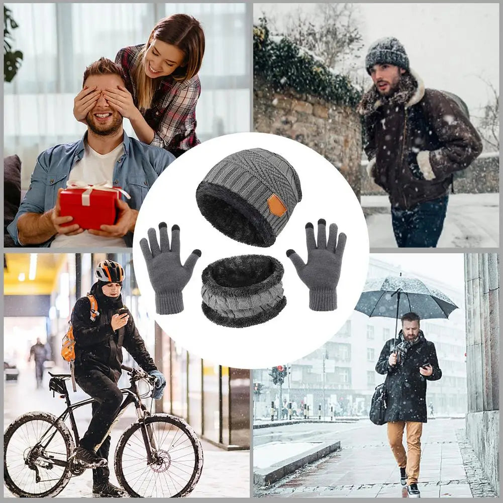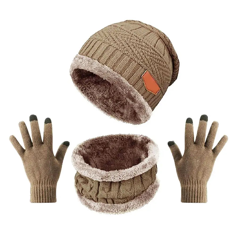 Warm Slouchy Beanie Snow Kit Knit Skull Cap Scarf Set For Men Women Winter Hat Scarf Gloves Touch Screen Gloves Circle Scarf