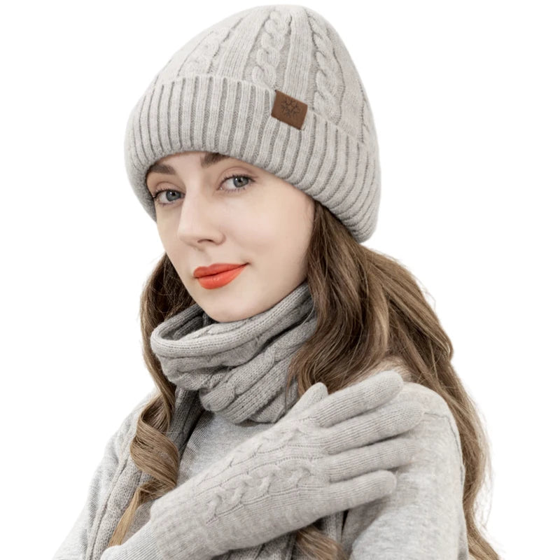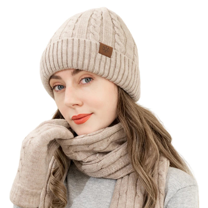 Winter Beanie Hat Scarf Gloves Set for Women Men Warm Beanie Long Scarf Neck Warmer Touchscreen Gloves 3 in 1 Set