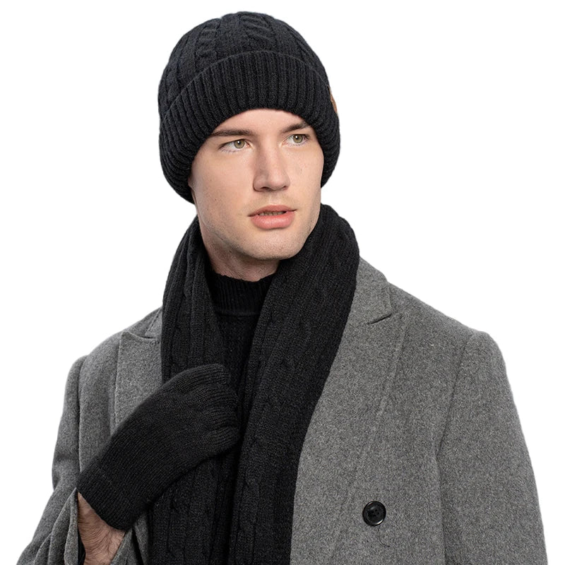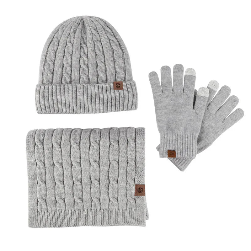 Winter Beanie Hat Scarf Gloves Set for Women Men Warm Wool Beanie Long Scarf Neck Warmer Touchscreen Gloves 3 in 1 Set