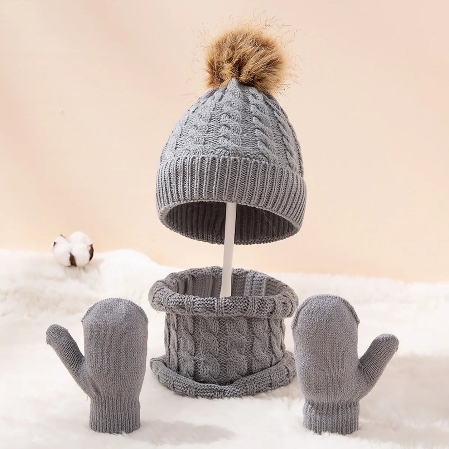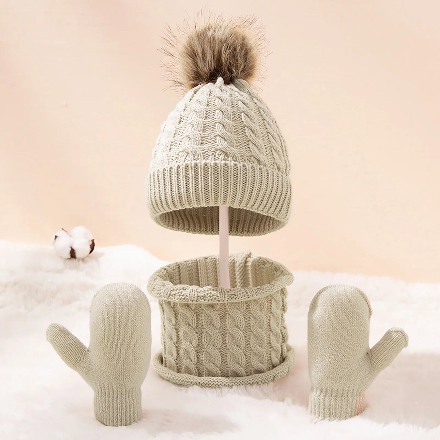 Winter Kids Hat Scarf Glove Set Knit Fleece Lined Neck Warmer Mittens For Toddler Boys Girls