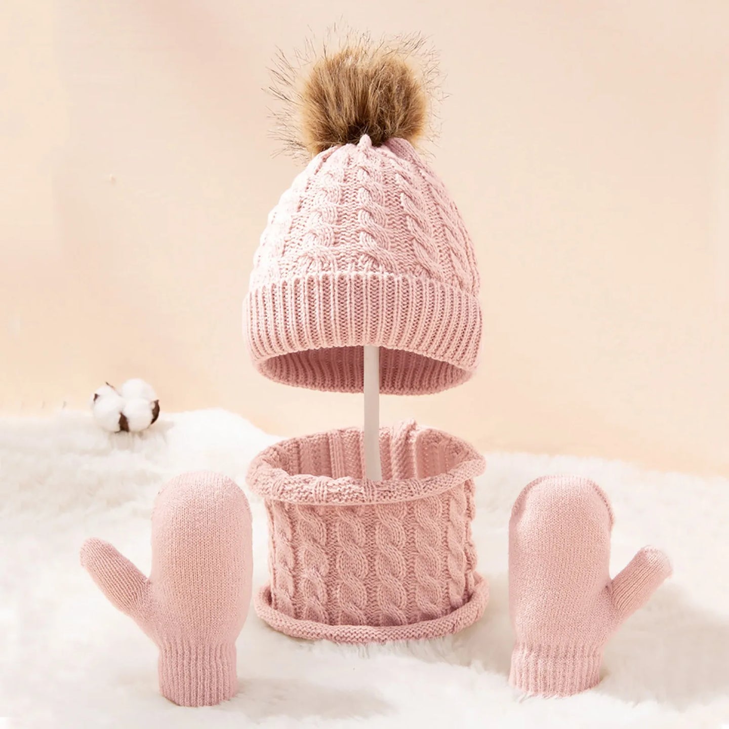 Winter Kids Hat Scarf Glove Set Knit Fleece Lined Neck Warmer Mittens For Toddler Boys Girls Hat Gloves Scarf Set Girls