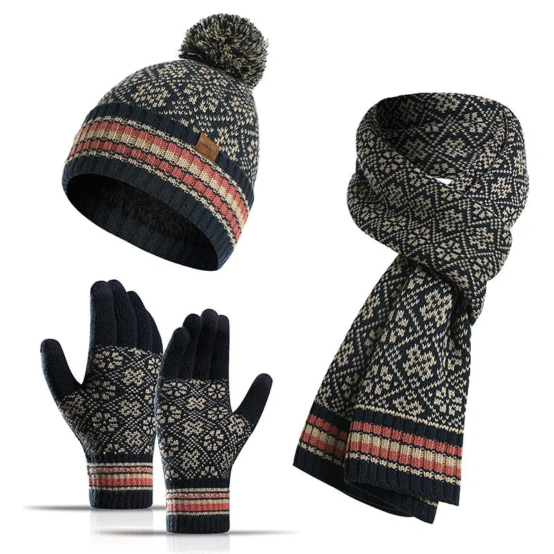 Women Winter Keep Warm Set Fleece Lining Beanie Telefingers Gloves Thicken Scarf Christmas Hat Snow Design Neckerchief 3 Pieces