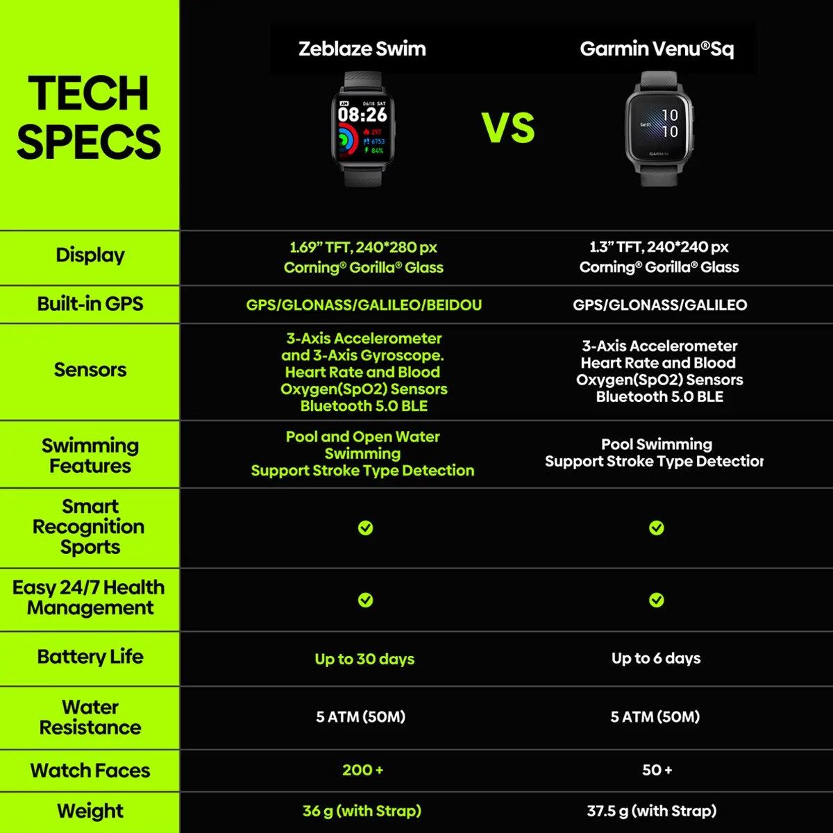 Experience Zeblaze's Swim GPS Swimming Smart Watch! This watch is ideal for pool & open water swimmers, and is equipped with a Built in GPS & 24H Health Monitor. Compatible with the Zeblaze Fit app, it features Multiple Dials, Screen Shape, Style, & Mechanism. Enjoy a Wireless & Waterproof Grade with a detachable band, plus an onboard ROM & RAM of 128MB & below. Plus, you'll enjoy up to 14 language options! Monitor Blood Oxygen, Sleep, & Heart Rate with a Resolution of 240*285 Pixels & a Weight of 38 grams. Embrace its incredible, interactive features & its 300-450mah battery capacity!