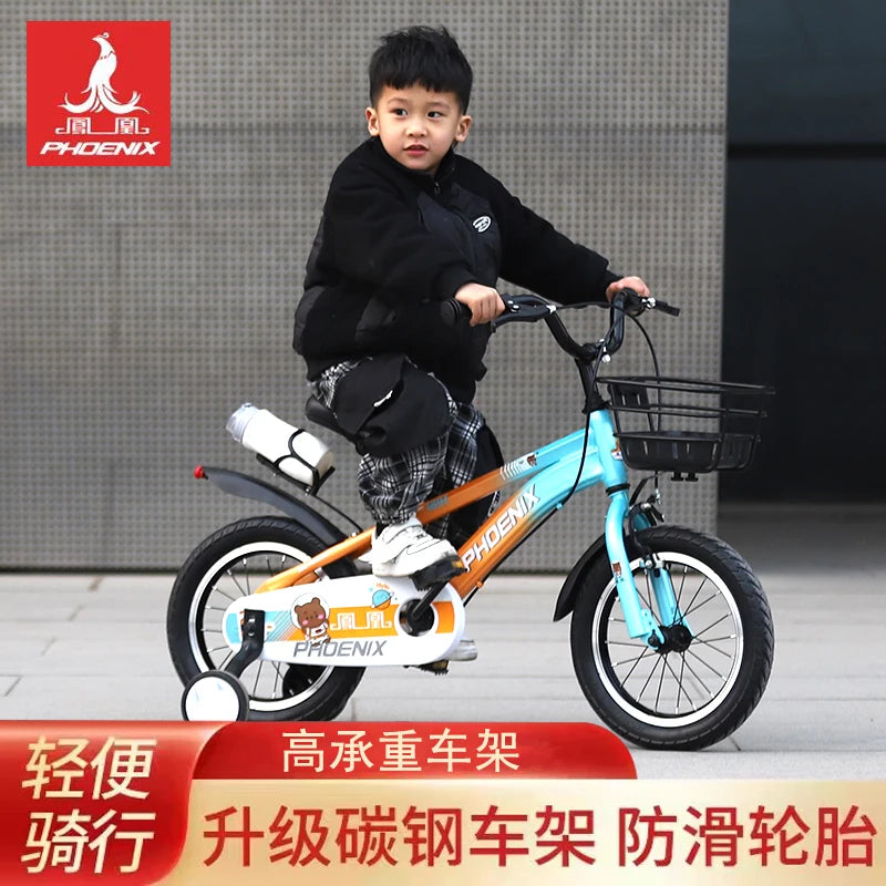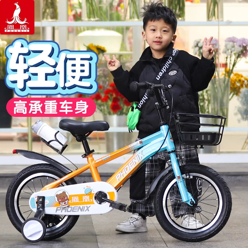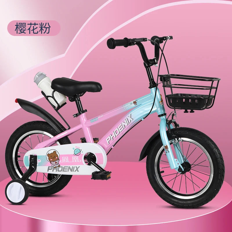 12/14/16 Inches Bicycle Children Bike Dual Disc Brake High Carbon Steel Adjustable With Auxiliary Wheels 6-12 Years Old