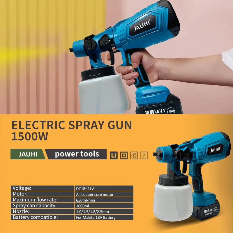 1000ML Electric Cordless Spray Gun High Power HVLP Paint Sprayer Auto Furniture Steel Coating Airbrush For Makita 18V Battery