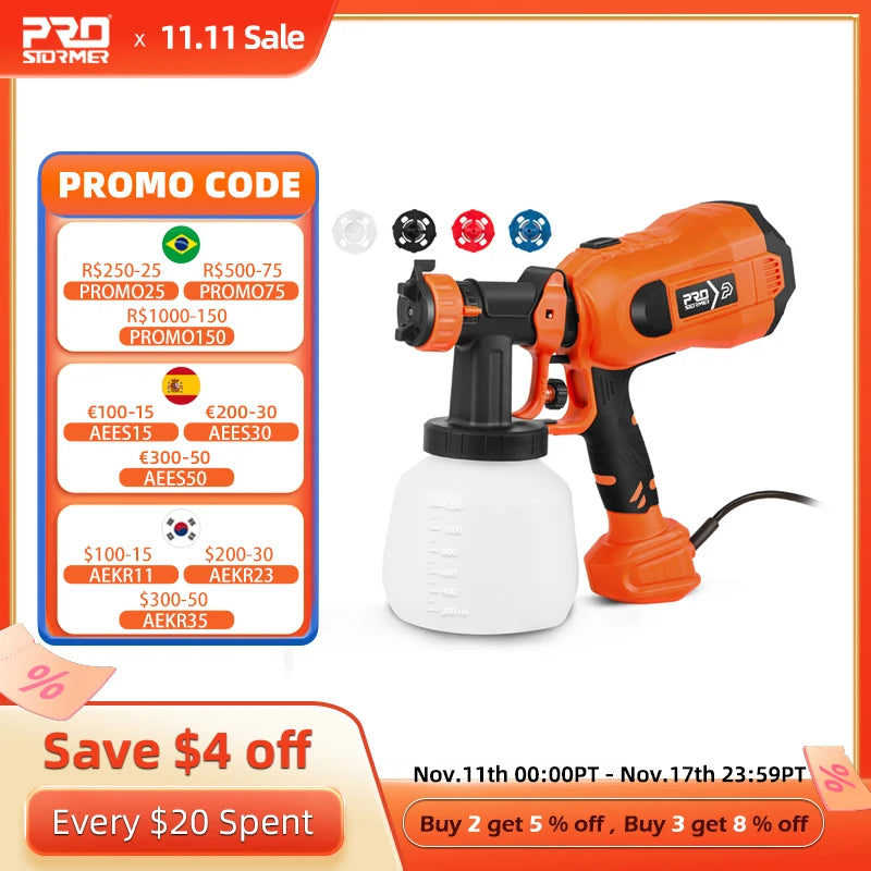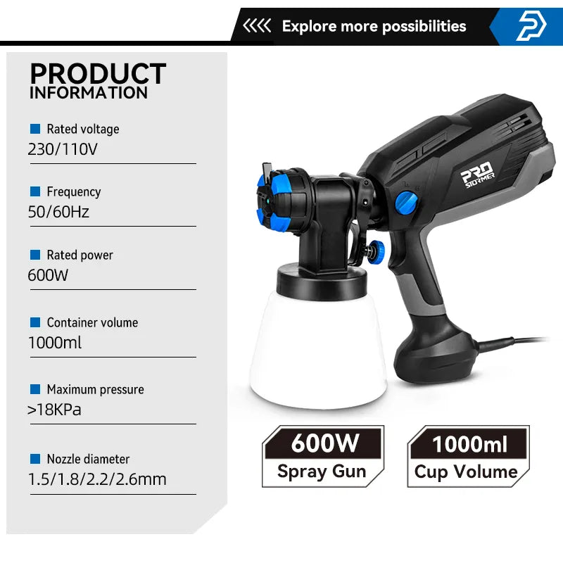 600W/750W Electric Spray Gun 4 Nozzle Sizes 1000ml/1200ml HVLP Household Paint Sprayer Flow Control Easy Spraying by PROSTORMER