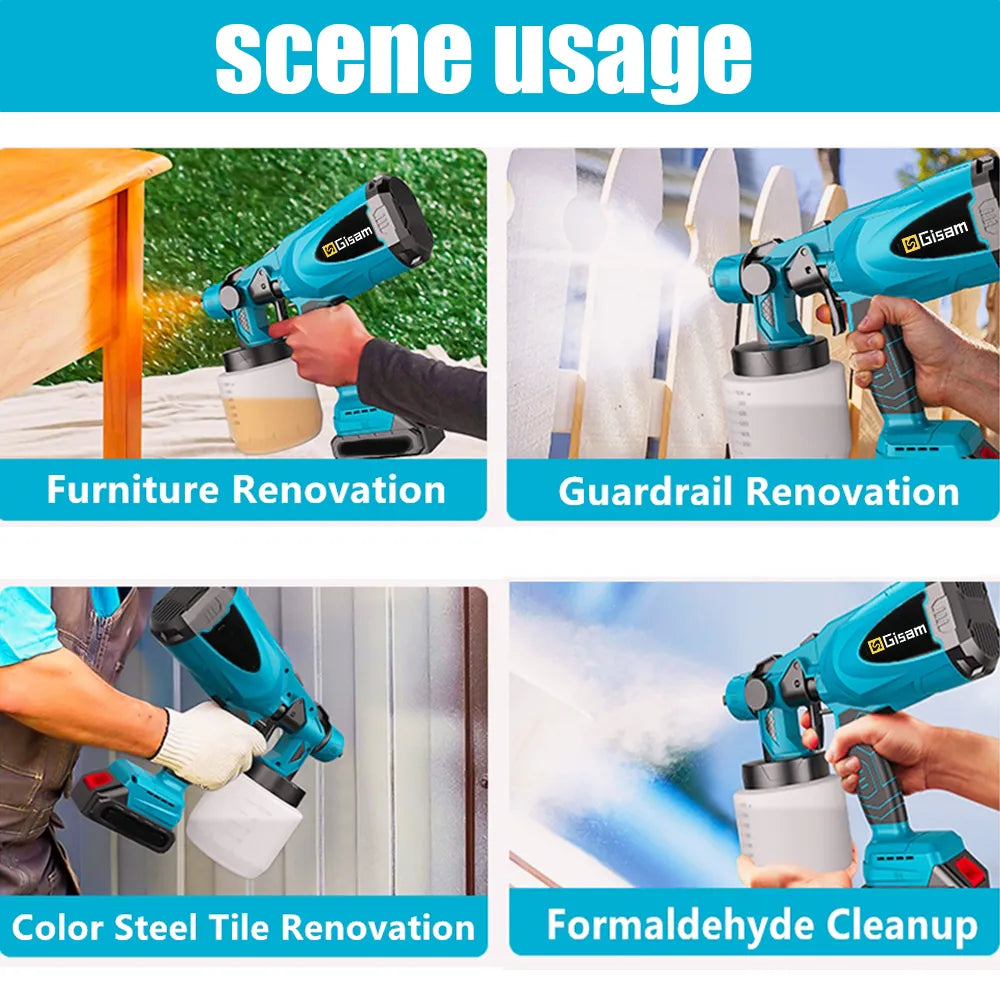 800ML Cordless Electric Spray Gun Portable Paint Sprayer Auto Furniture Steel Coating Airbrush Compatible For Makita 18V Battery