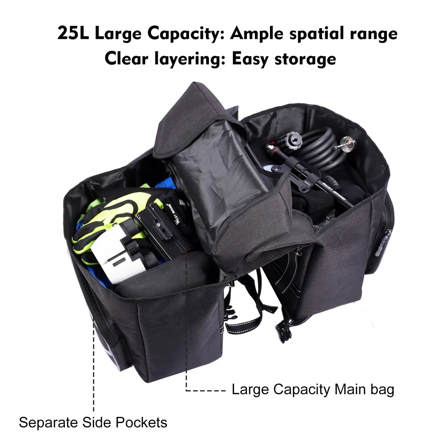 WEST BIKING Bicycle Rear Seat Bag 25L Large Capacity Outdoor Luggage Carrier Bags Cycling MTB Road Bike Trunk Double Pannier Bag