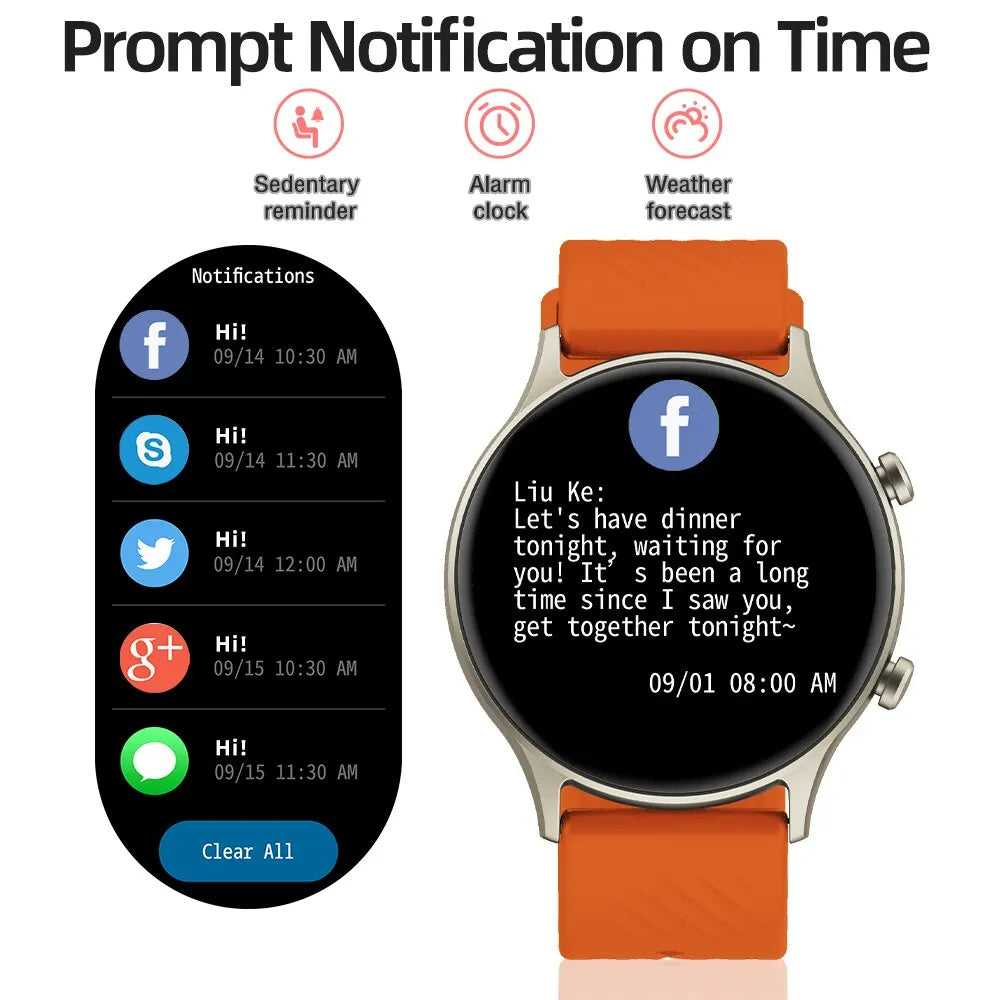 • Bluetooth call :Stay connected on-the-go with the watch's Bluetooth call feature, allowing you to make and receive calls directly from the watch.