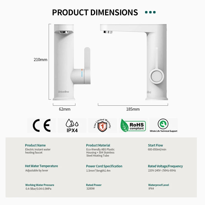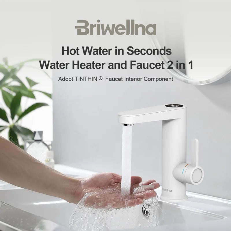 Briwellna Water Heater 220V 2 in 1 Basin Faucet Cold and Hot Water Tap Tankless Water Heater Flowing Eectric Faucet Heated Mixer